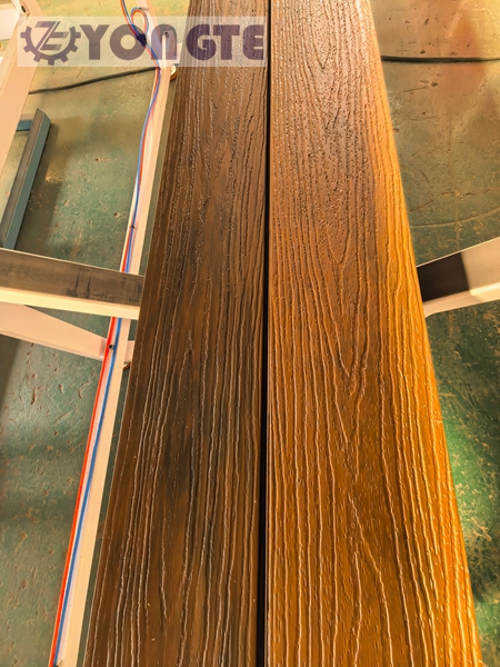 Volgens het technische team van Yongte was deze upgrade vooral gericht op matrijsprecisie- en procescontrolesystemen. Voorheen ondervond de industrie vaak problemen met 3D-reliëfprocessen, zoals ongelijkmatige textuurdiepte en kromtrekken van het oppervlak. Door herhaalde aanpassingen en geleidelijke optimalisatie van het matrijsontwerp en de temperatuurcontroleparameters bereikten ze uiteindelijk een textuurreproductie van meer dan 95% en steeg het productkwalificatiepercentage van 92% naar 98,5%. Deze productielijn is nu in staat om op betrouwbare wijze houtvezels en milieuvriendelijke HDPE-composietmaterialen te verwerken, waardoor reliëftexturen tot 2 à 3 mm diep worden bereikt. Of het nu gaat om de ruige textuur van eikenhout of de delicate textuur van walnoot, de textuur en het visuele effect zijn zeer reproduceerbaar, waardoor het gevoel en het visuele effect vrijwel niet van echt te onderscheiden zijn.