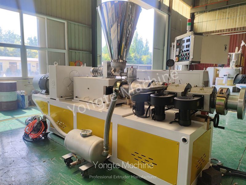 Extrudermodel: Volgens verschillende productiebehoeften kan de extrusielijn van de yongte hout-plastic deurplastic worden uitgerust met een verscheidenheid aan twin-screw-extruders, zoals SJZ51/105, SJZ65/132, enz. Deze extruders hebben verschillende parameters zoals schroefdiameter en beeldverhouding en de toepasselijke ruwe materialen zijn ook verschillend.